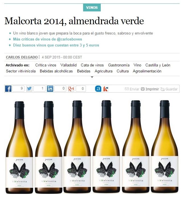 El vino Malcorta 2014 de Javier Sanz Viticultor se cuela hoy entre las páginas del …